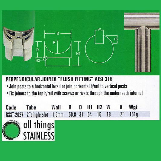 2" Perpendicular Joiner "Flush Fitting" Single Slotted Tube