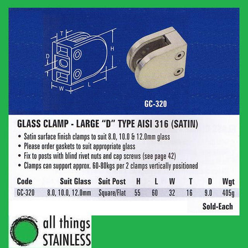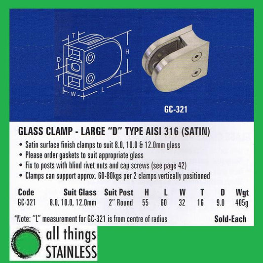 Satin - Round - Large D Type suits 8.0,10.0,12.0mm Glass