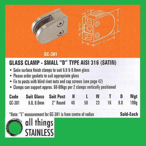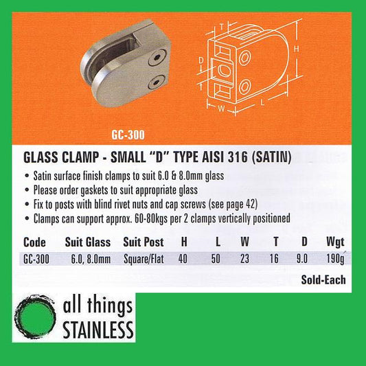 Satin - Flat - Small D Type suits 6.0, 8.0mm Glass Post: Square or Flat