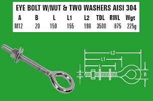 304: M12x150mm Eye Bolt | Item: Eye BoltMaterial: Sta... | EB-12150 | $14.40 AUD | 191 | 117 |