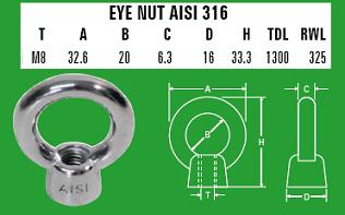 316: M8 Eye Nut | EN-08 | $3.30 AUD | 32 | -160 |
