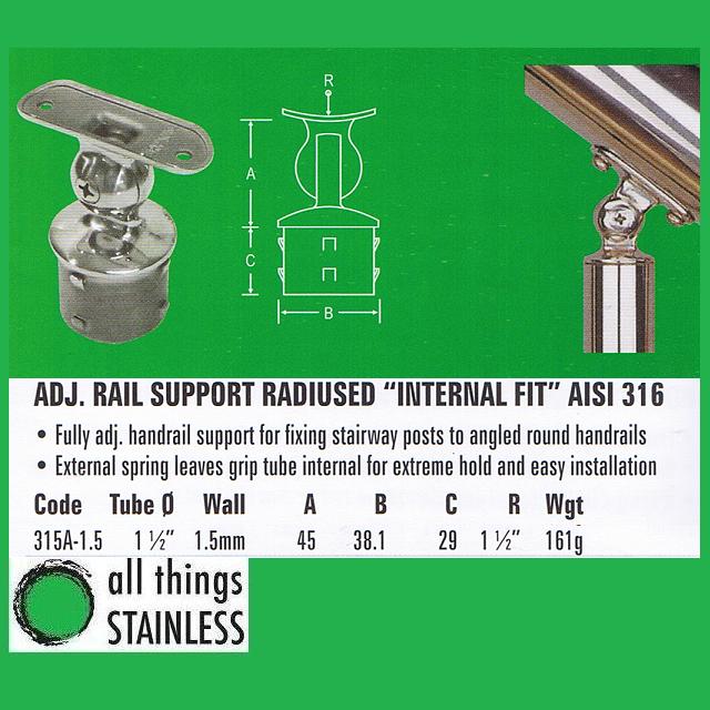 1.5" Adjustable Rail Support 1.5" Radiused "Internal Fit"