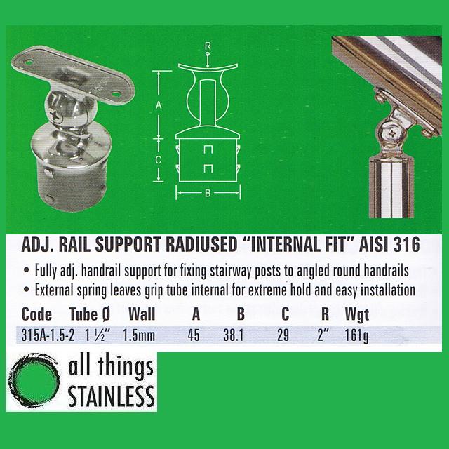 1.5" Adjustable Rail Support 2" Radiused "Internal Fit"