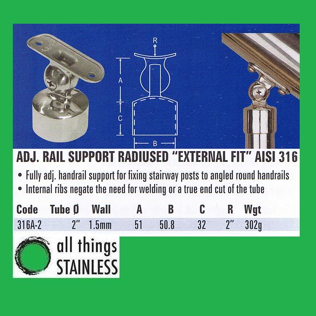 316: 2" Adj. Rail Support Radiused "External Fit"