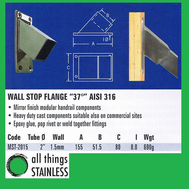 316: 50x50mm 37 Degree Wall Stop Flange Square Mirror
