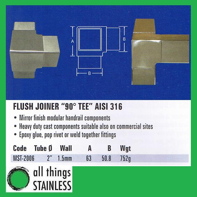 316: 50x50mm Flush Joiner 90 Deg TEE Square Mirror