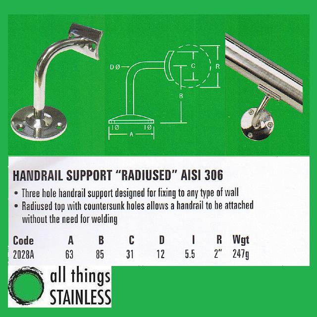 316: 2" Radius Stainless Steel Handrail Support Bracket - 2028A