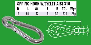 316: 6mm Spring Hook with Eyelet